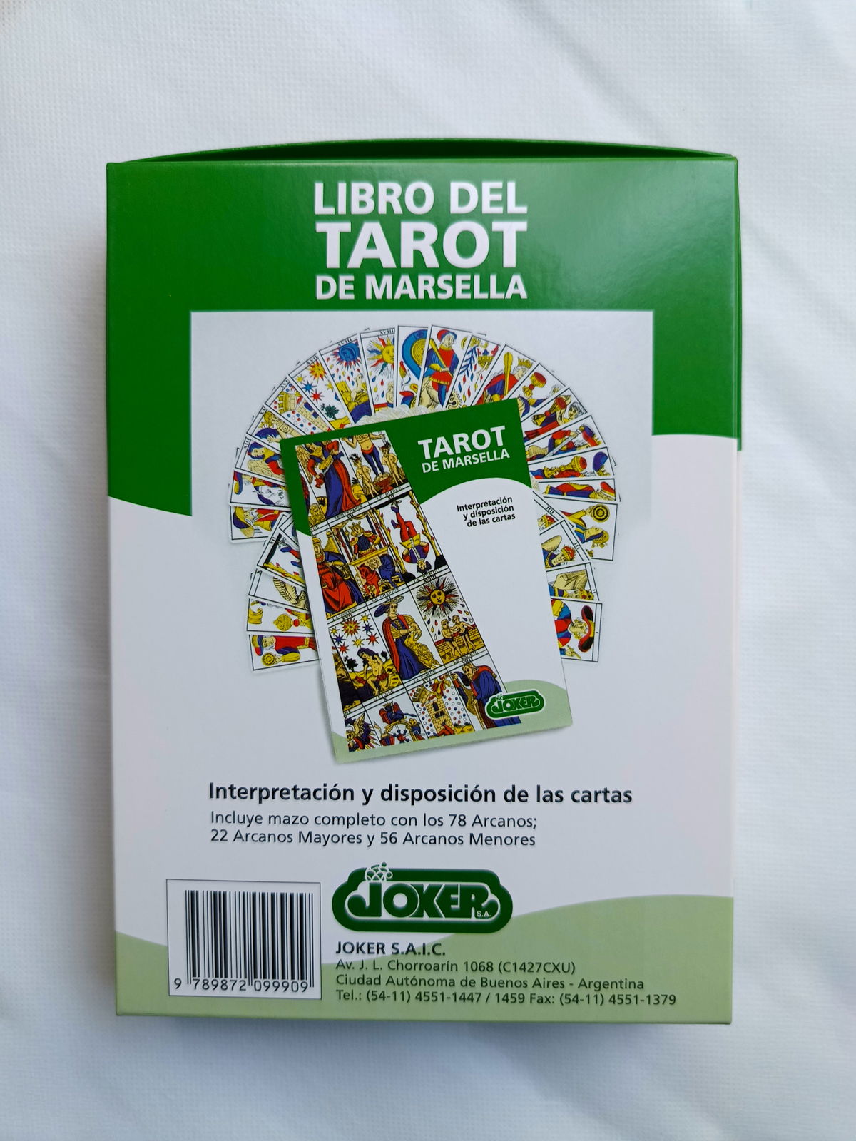 La caja contiene 78 cartas (22 arcanos mayores y 56 arcanos menores) y un libro que guía en la lectura e interpretación.