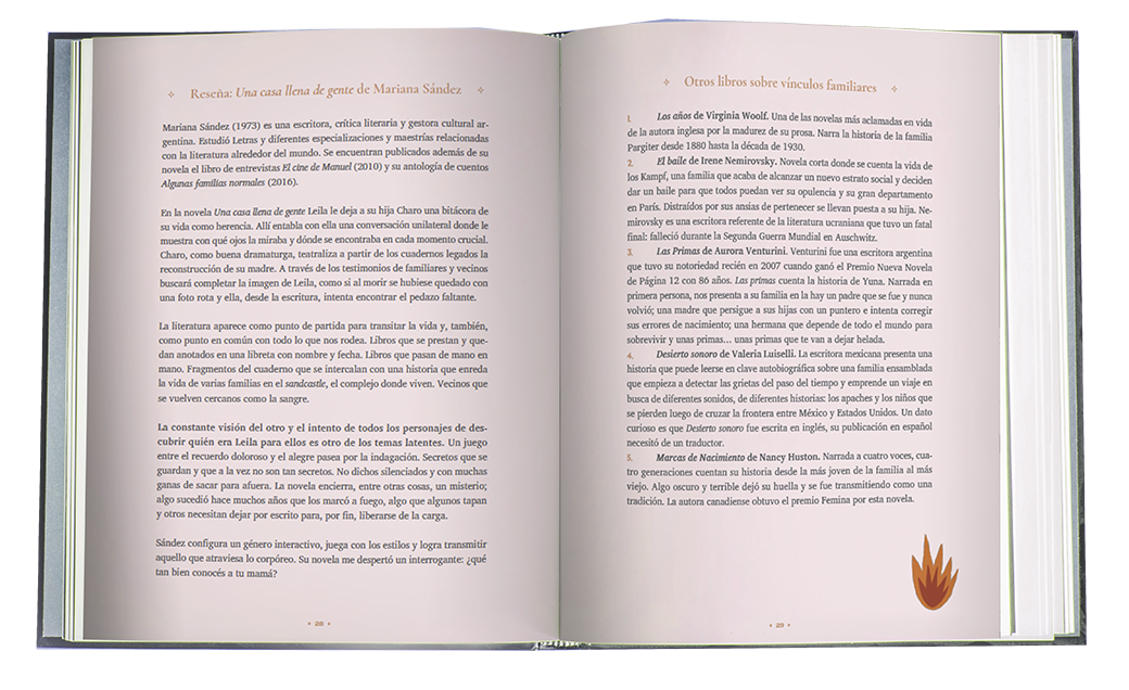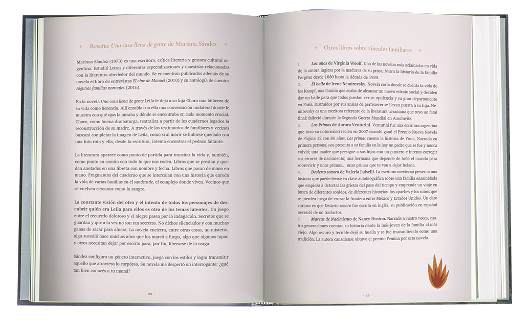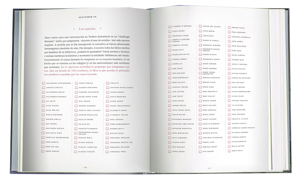 “Bitácora de lectura” (Fera, 2022) y realizó el prólogo, análisis y comentarios de la edición ilustrada de “Un cuarto propio” de Virginia Woolf, también publicada por Fera. Actualmente coordina talleres de lectura de novela y de cuentos.