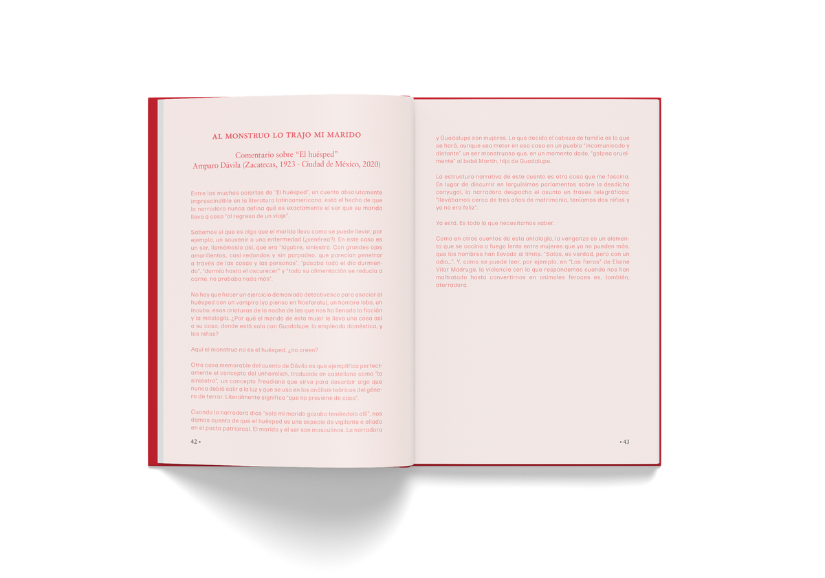 “En esta antología hay mujeres voladoras, mujeres lobas, mujeres serpientes, brujas, vírgenes, mártires, víctimas y victimarias, extranjeras en su propia ciudad, prisioneras, videntes, asesinas”.