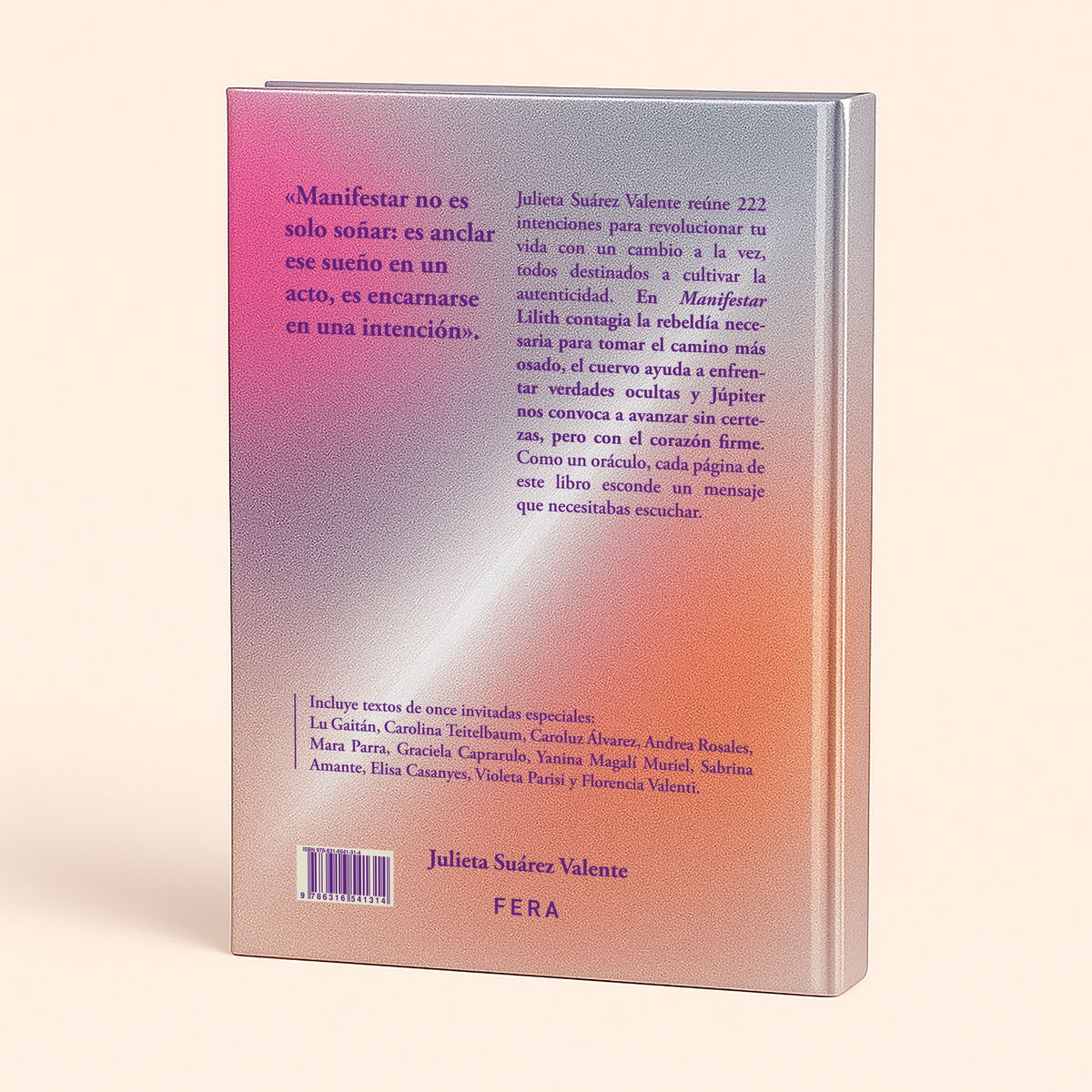 Julieta Suárez Valente reúne 222 intenciones para revolucionar tu vida con un cambio a la vez, todos destinados a cultivar la autenticidad. En Manifestar, Lilith contagia la rebeldía necesaria para tomar el camino más osado, el cuervo ayuda a enfrentar verdades ocultas y Júpiter nos convoca a avanzar sin certezas, pero con el corazón firme. Como un oráculo, cada página de este libro esconde un mensaje que necesitabas escuchar.