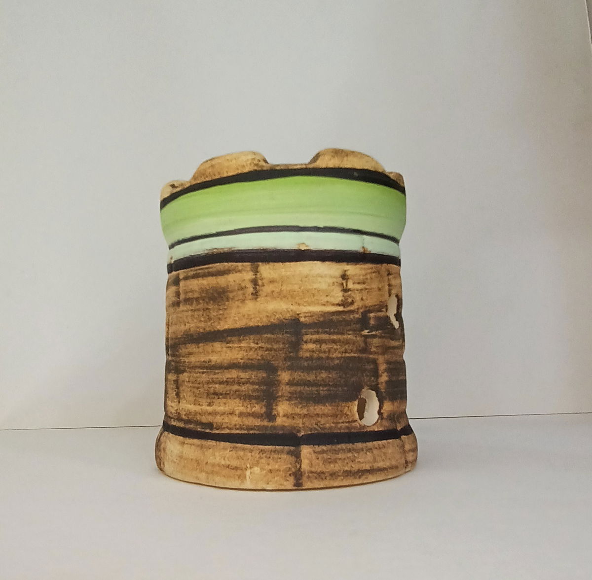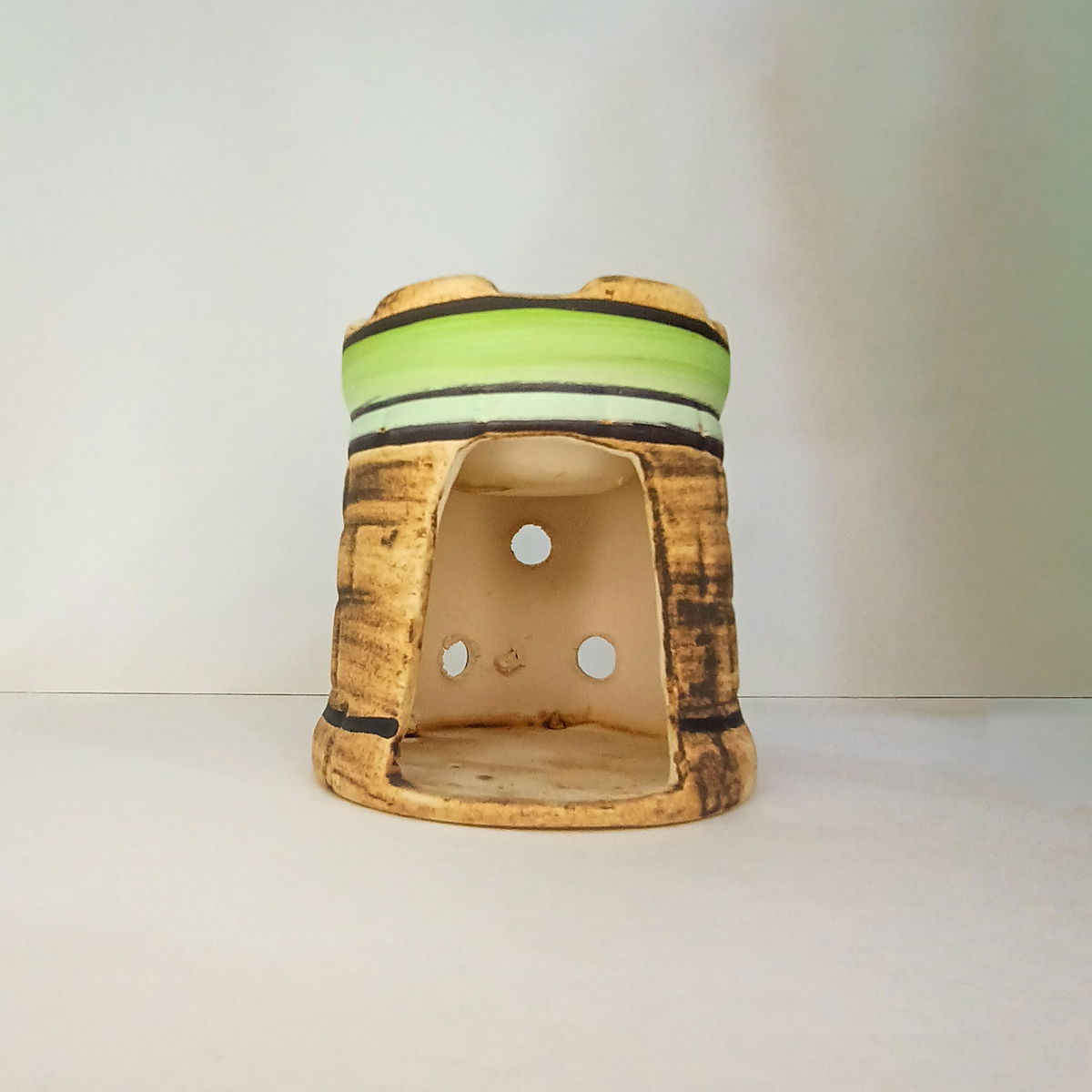 Hornillo de estilo rústico, diseñado en forma de torre, ideal para esencias y aceites aromáticos. Su estructura alta permite una difusión pareja y suave, mientras que su diseño aporta un toque cálido y decorativo a cualquier ambiente.