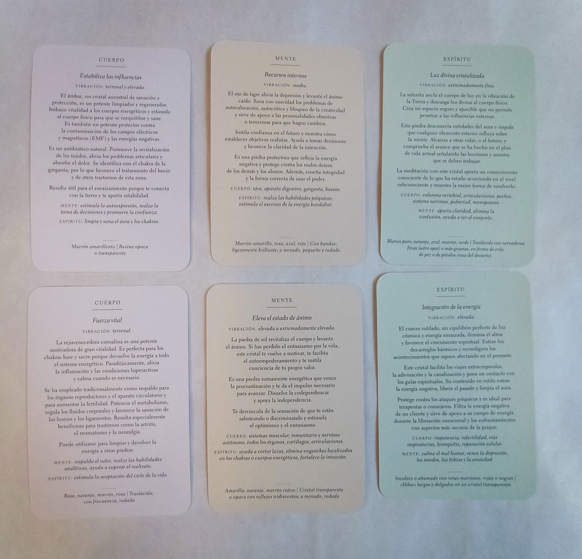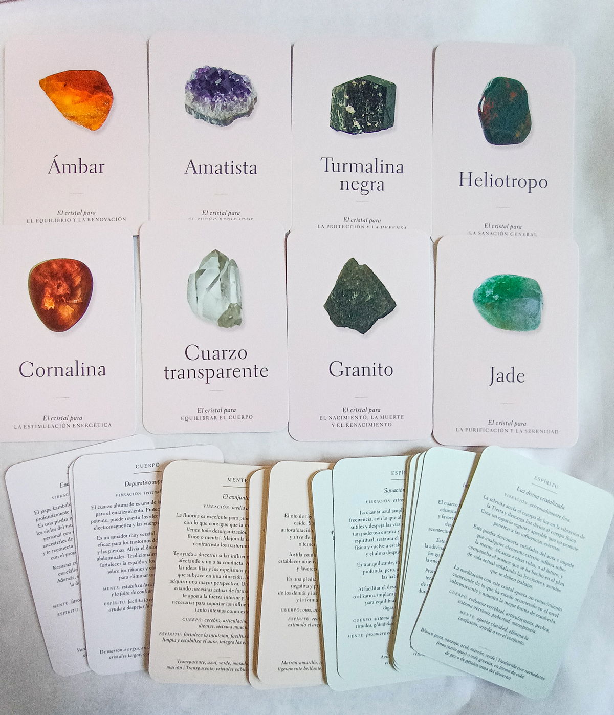 Cada una de ellas presenta un cristal con su correspondiente imagen y describe sus principales beneficios, ofreciendo además útiles consejos que te permitirán alcanzar un mayor bienestar. Gracias a una breve introducción sobre las prácticas más efectivas, el trabajo con esta baraja te abrirá las puertas al maravilloso universo de la sanación con cristales.¡Aprovecha el poder de las cartas para mejorar tu vida y hacer realidad tus sueños!