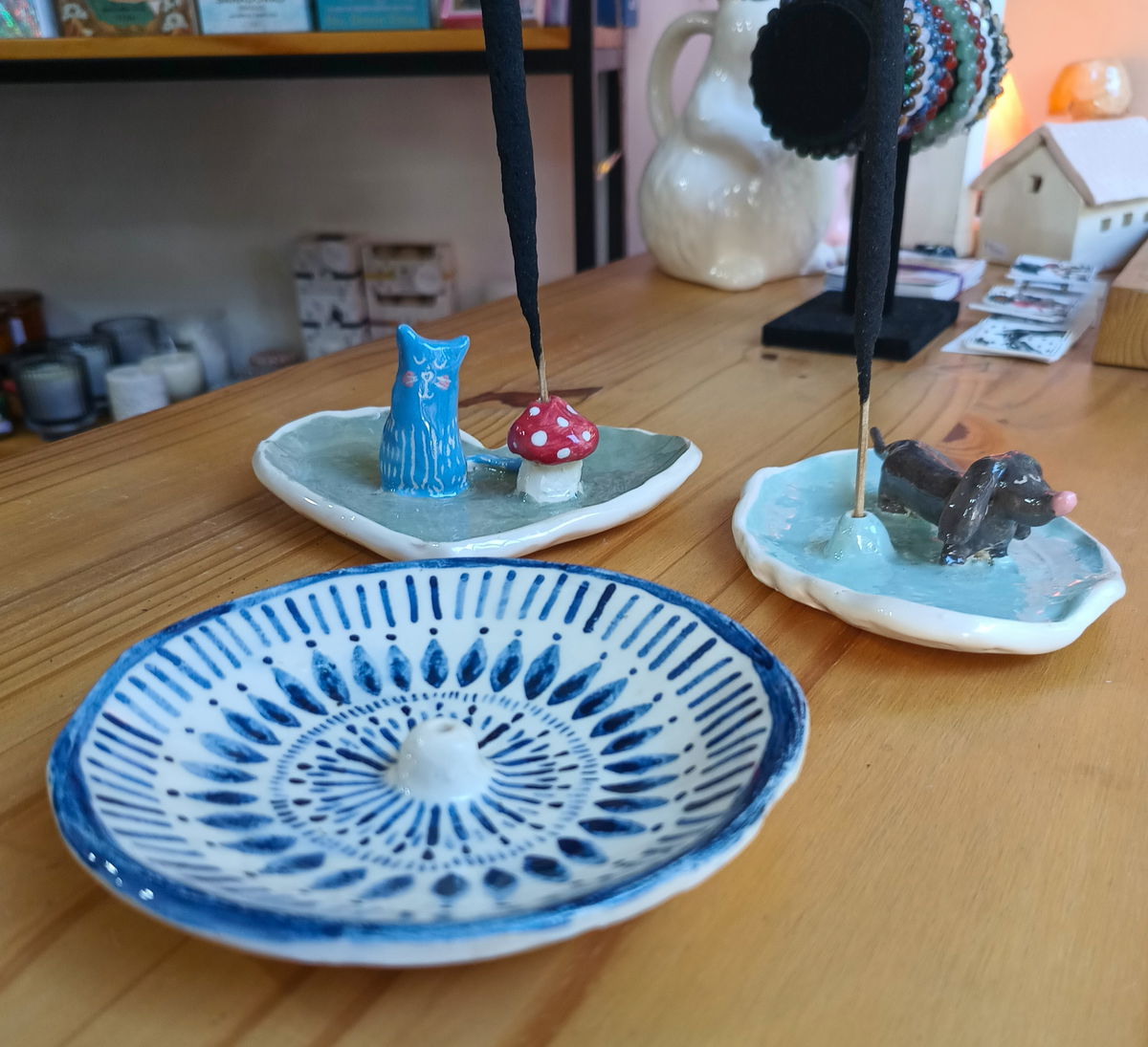 Porta Sahumerio Cerámica: Gatito-Perrito-Líneas