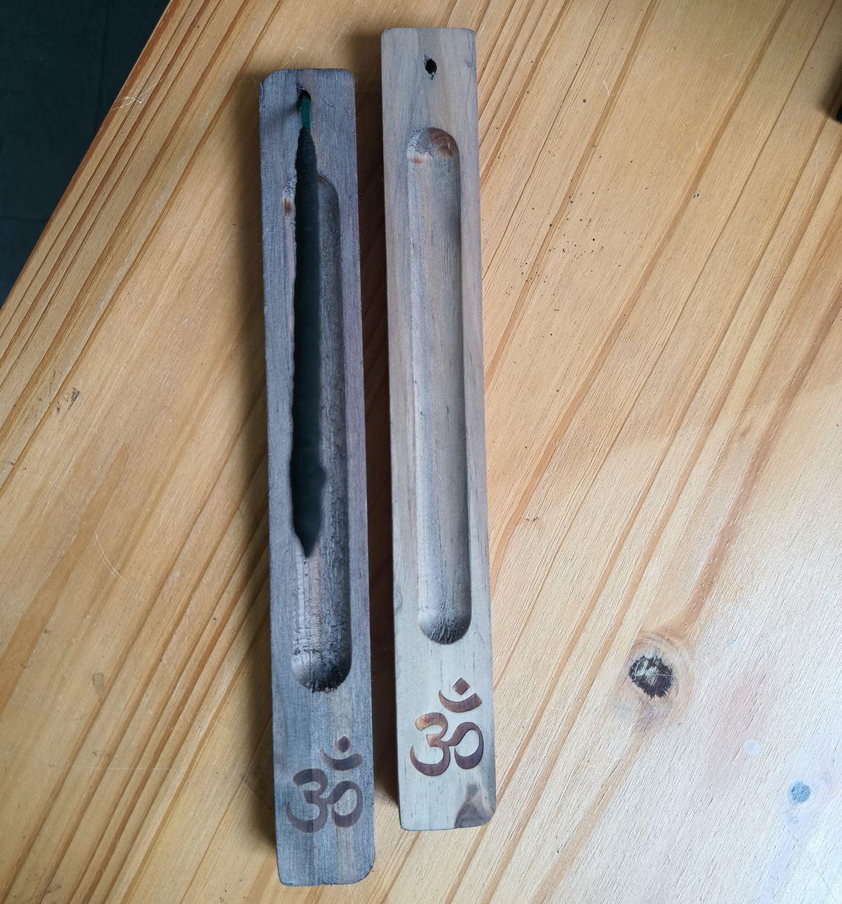 Alargado, liviano y práctico. Tallado con el símbolo OM, aporta armonía y presencia espiritual a tus sahumos. Una pieza única en madera, ideal para quienes buscan belleza, simpleza y energía consciente en su espacio