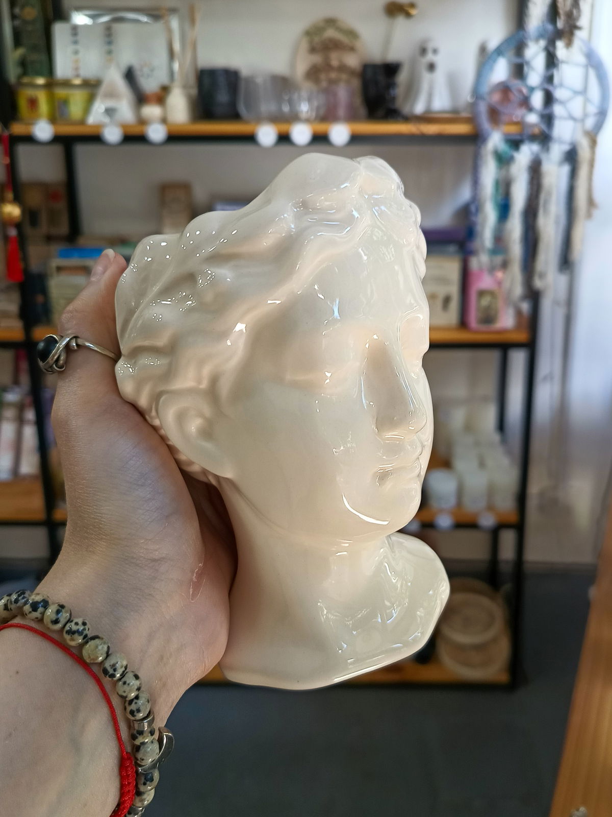 Su estética clásica griega + el acabado pintado a mano lo convierten en un objeto único, perfecto para decorar tu altar, tu living, tu escritorio o la entrada de tu hogar.