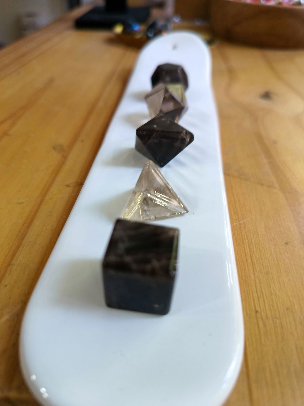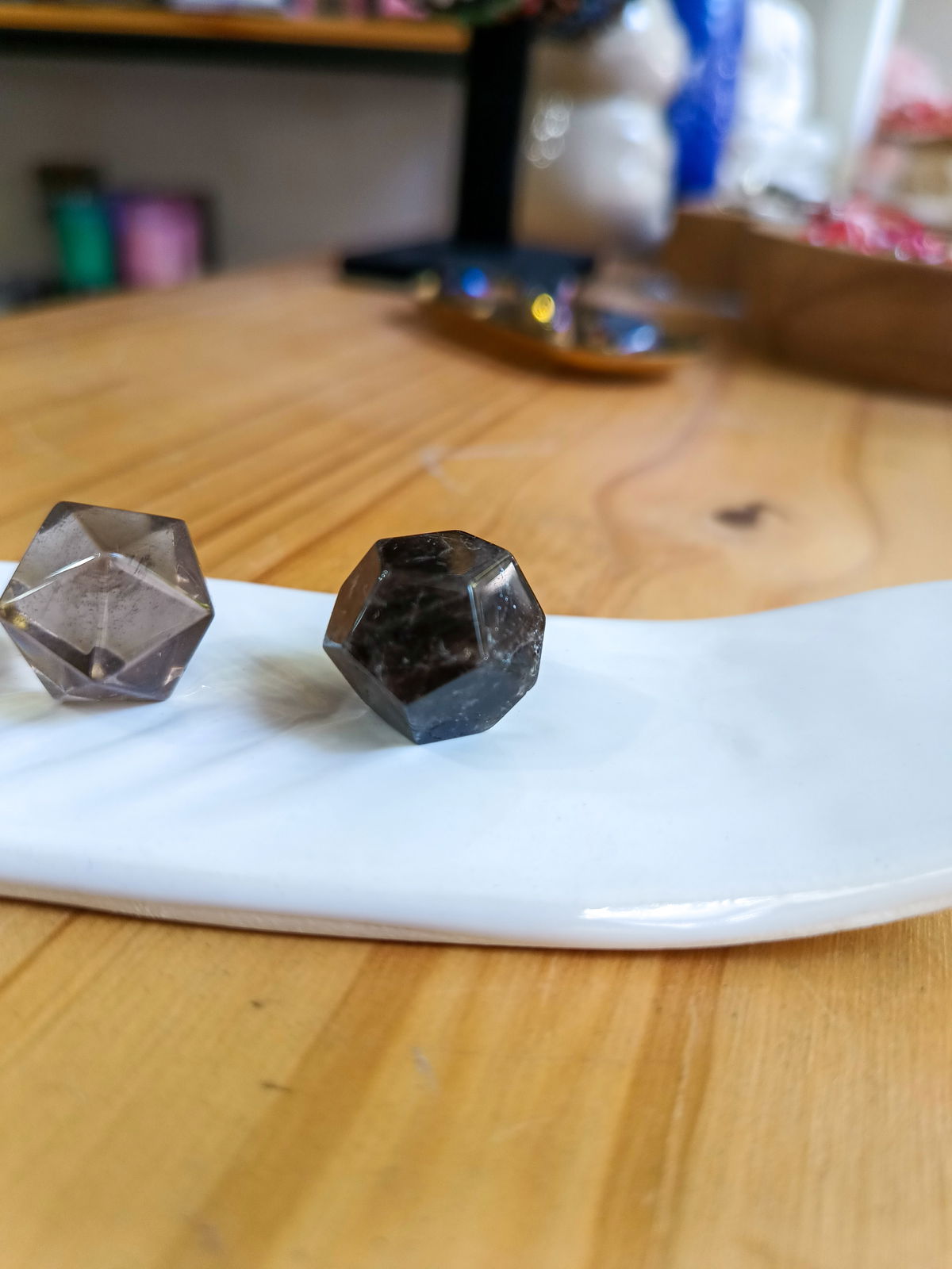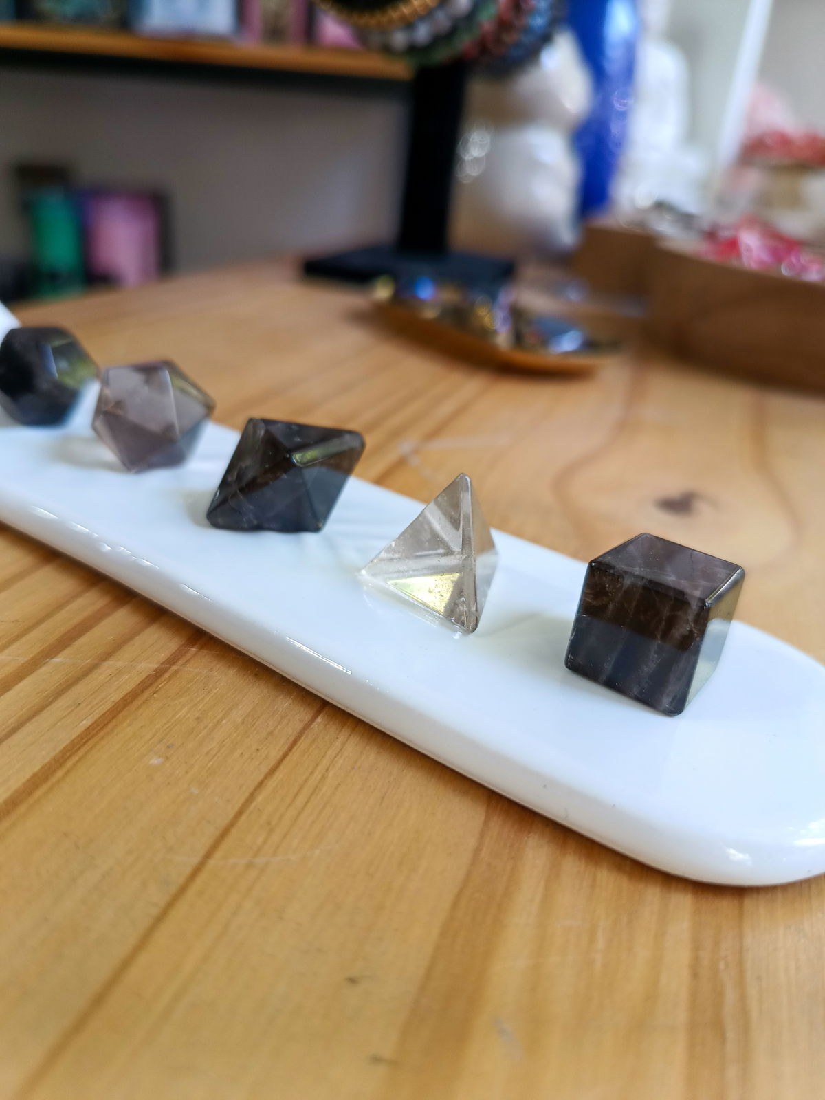 Set de Sólidos Platónicos en Cuarzo Fumé